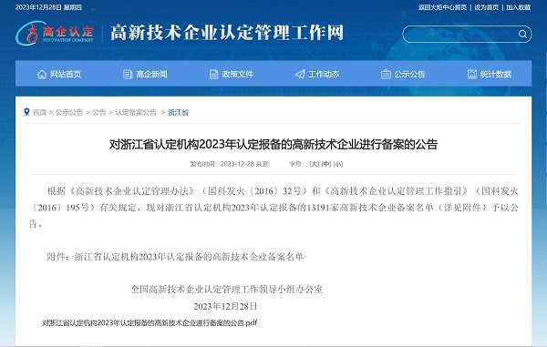 2023年12月28日,全國高新技術(shù)企業(yè)認(rèn)定管理工作領(lǐng)導(dǎo)小組辦公室發(fā)布《對浙江省認(rèn)定機(jī)構(gòu)2023年認(rèn)定報(bào)備的高新技術(shù)企業(yè)進(jìn)行備案的公告》,中國能源工程集團(tuán)有限公司(以下簡稱“中國能源工程集團(tuán)”)所屬中清能源(杭州) 有限公司...